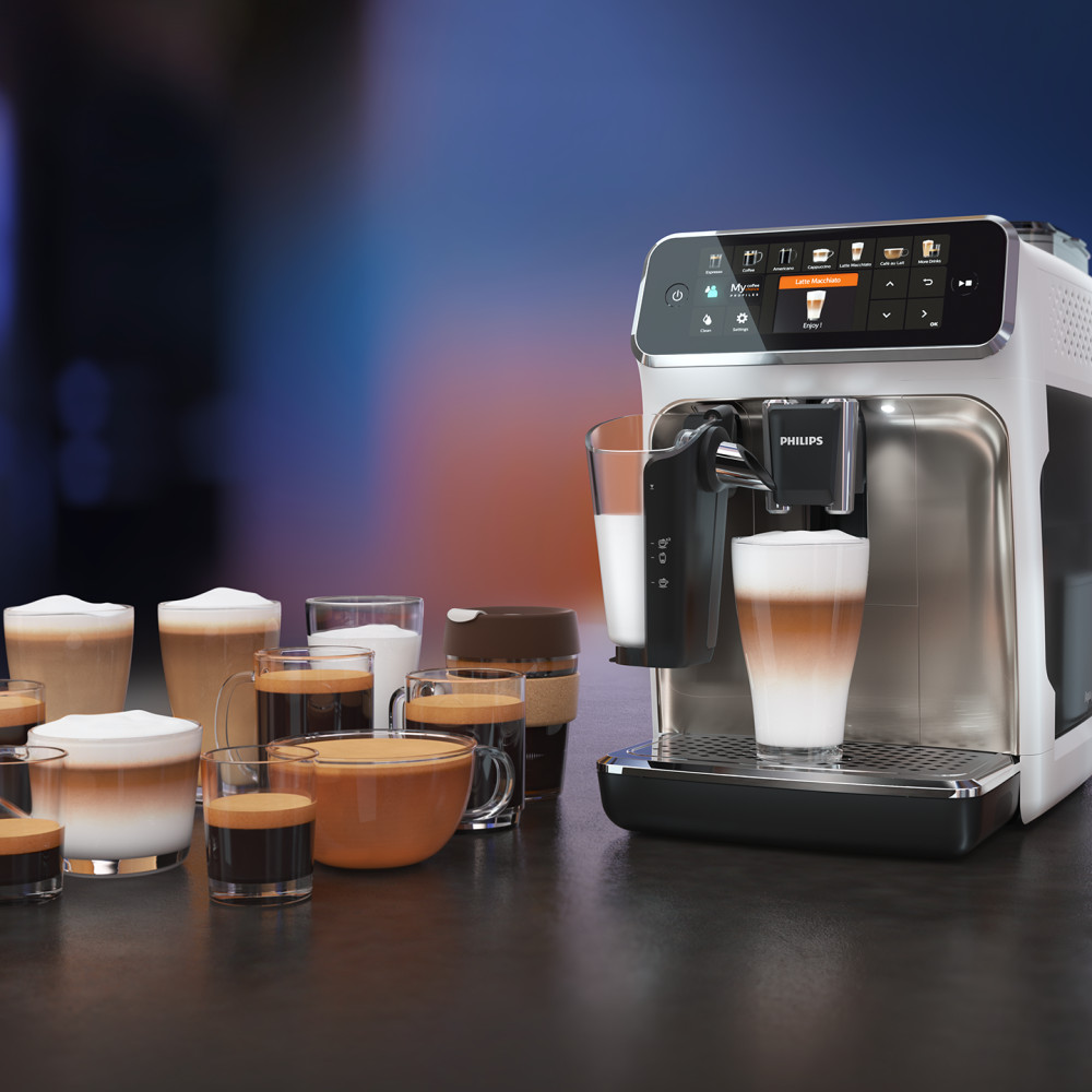 Visiškai automatinis kavos aparatas Philips „Series 5400“ iš šviežiai sumaltų kavos pupelių pagamins 12 kavos gėrimų vos vienu palietimu. Gėrimų su pienu mėgėjus nustebins naujoji Philips automatinė pieno sistema „LatteGo“, kuri tobulai suplaka pieno putą ir yra itin greitai bei paprastai išvaloma. 4 vartotojų profiliai suteikia galimybę išsaugoti savo asmeninius nustatymus. Dėl naujojo TFT ekrano kavos aparatą valdyti bus dar patogiau.